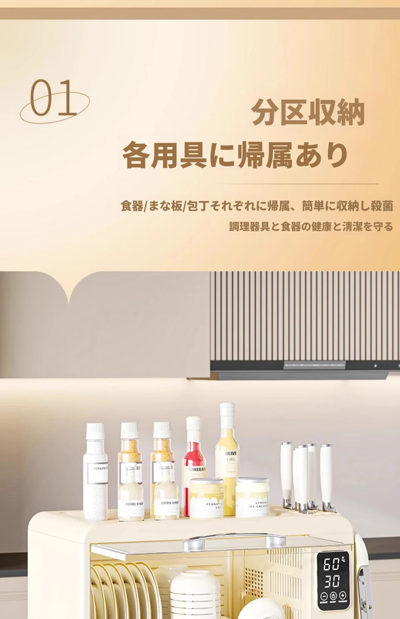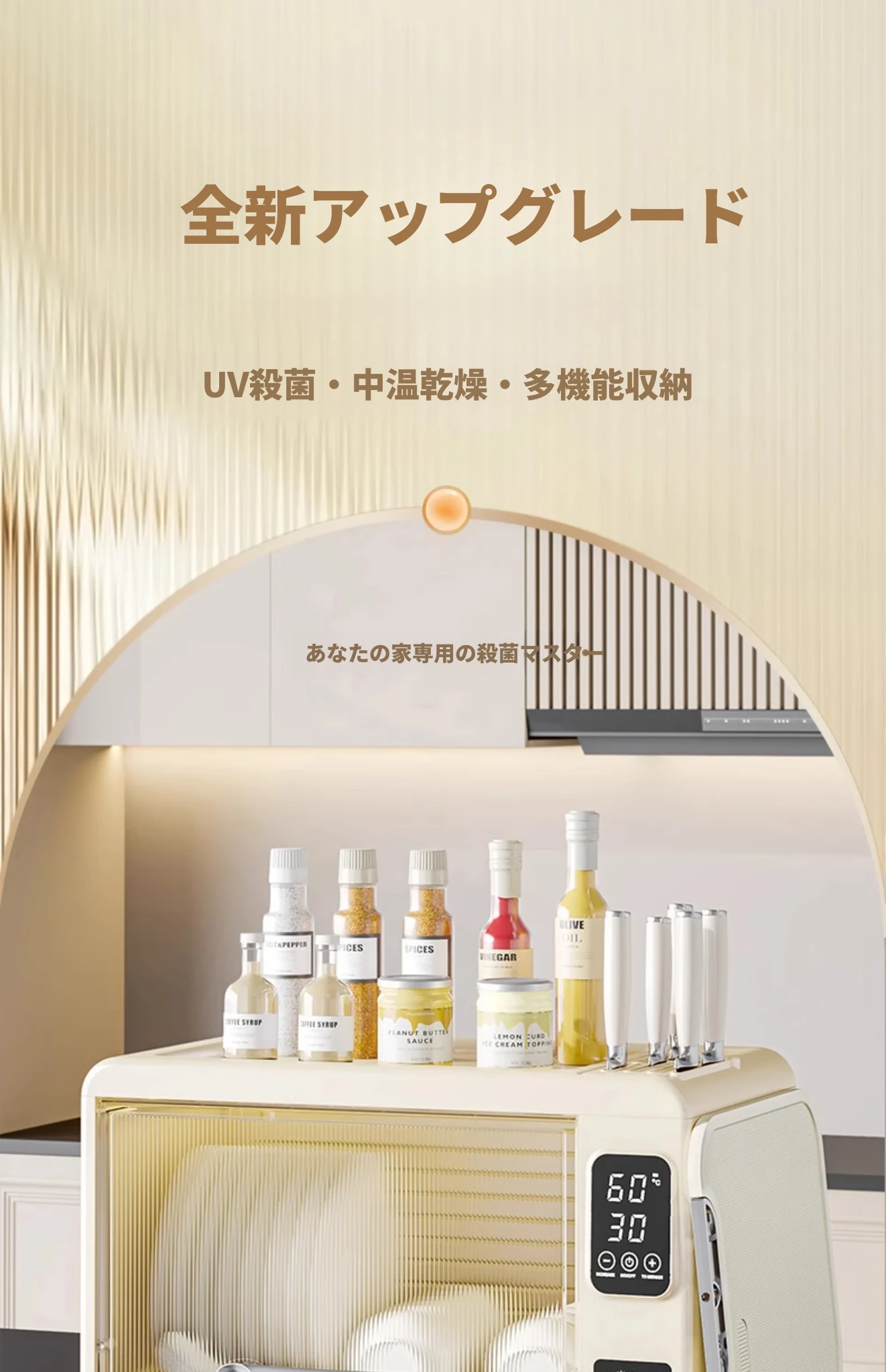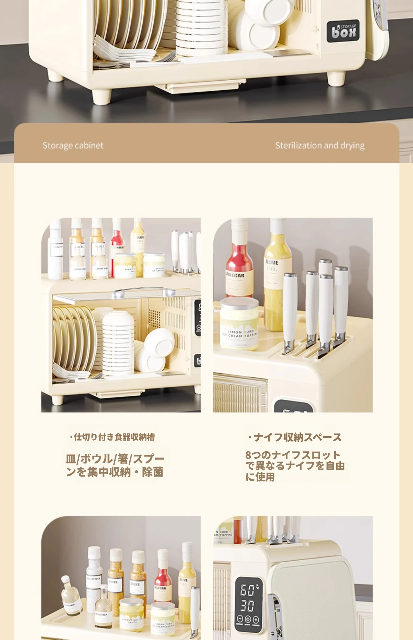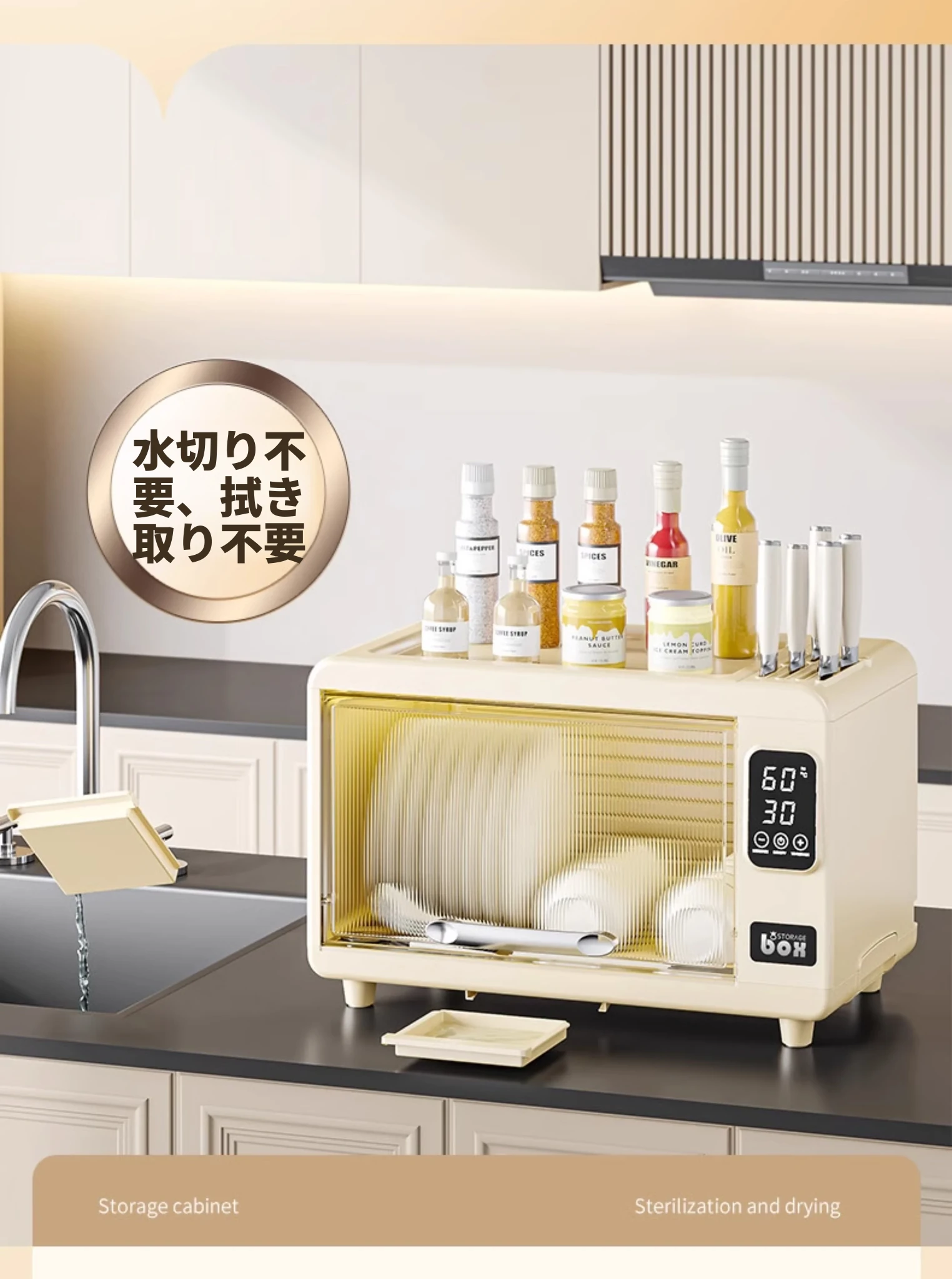 ミセダ家庭用UV消毒器付き小型包丁スタンド・食器・箸乾燥機能一体型!二段式食器ラックで、清潔で乾燥した食器を簡単に保管。あなたのキッチンをより快適に!