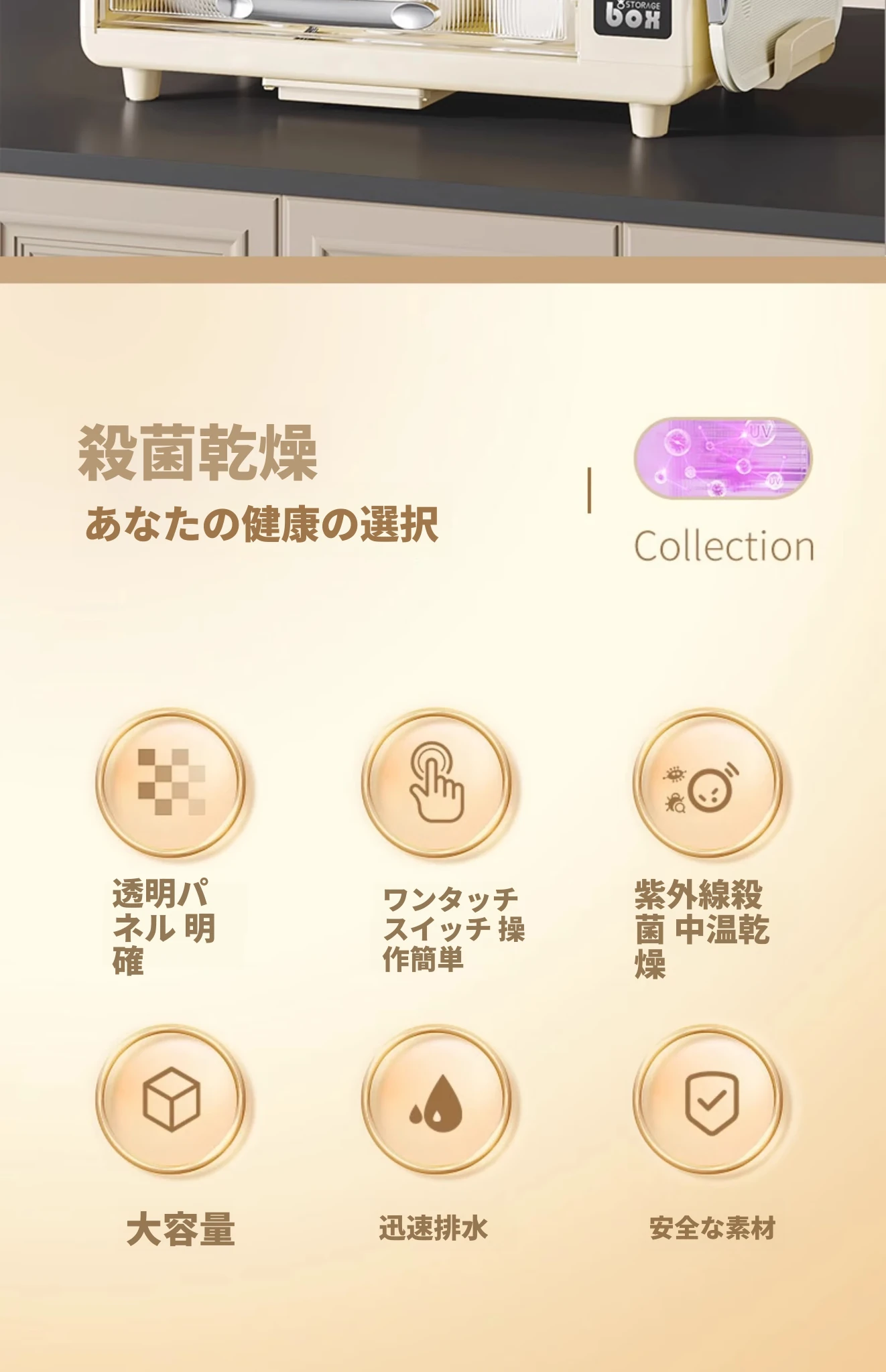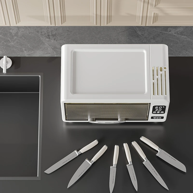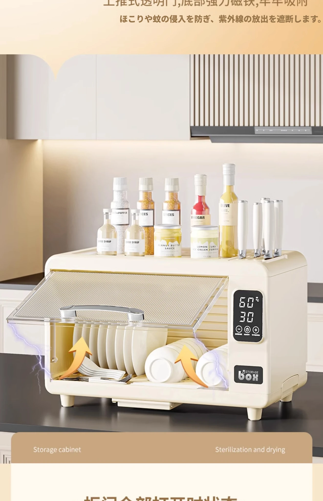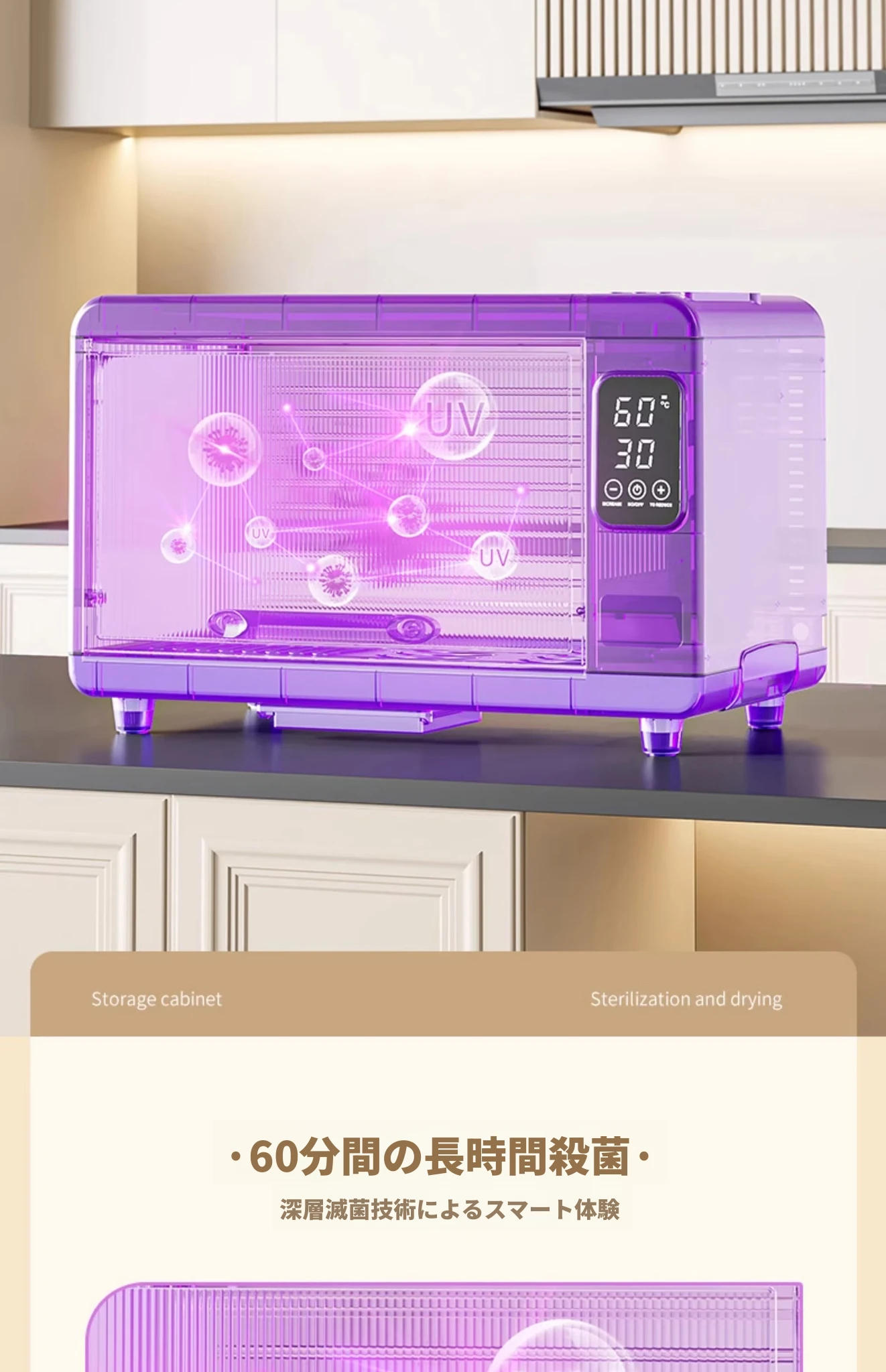 ミセダ家庭用UV消毒器付き小型包丁スタンド・食器・箸乾燥機能一体型!二段式食器ラックで、清潔で乾燥した食器を簡単に保管。あなたのキッチンをより快適に!