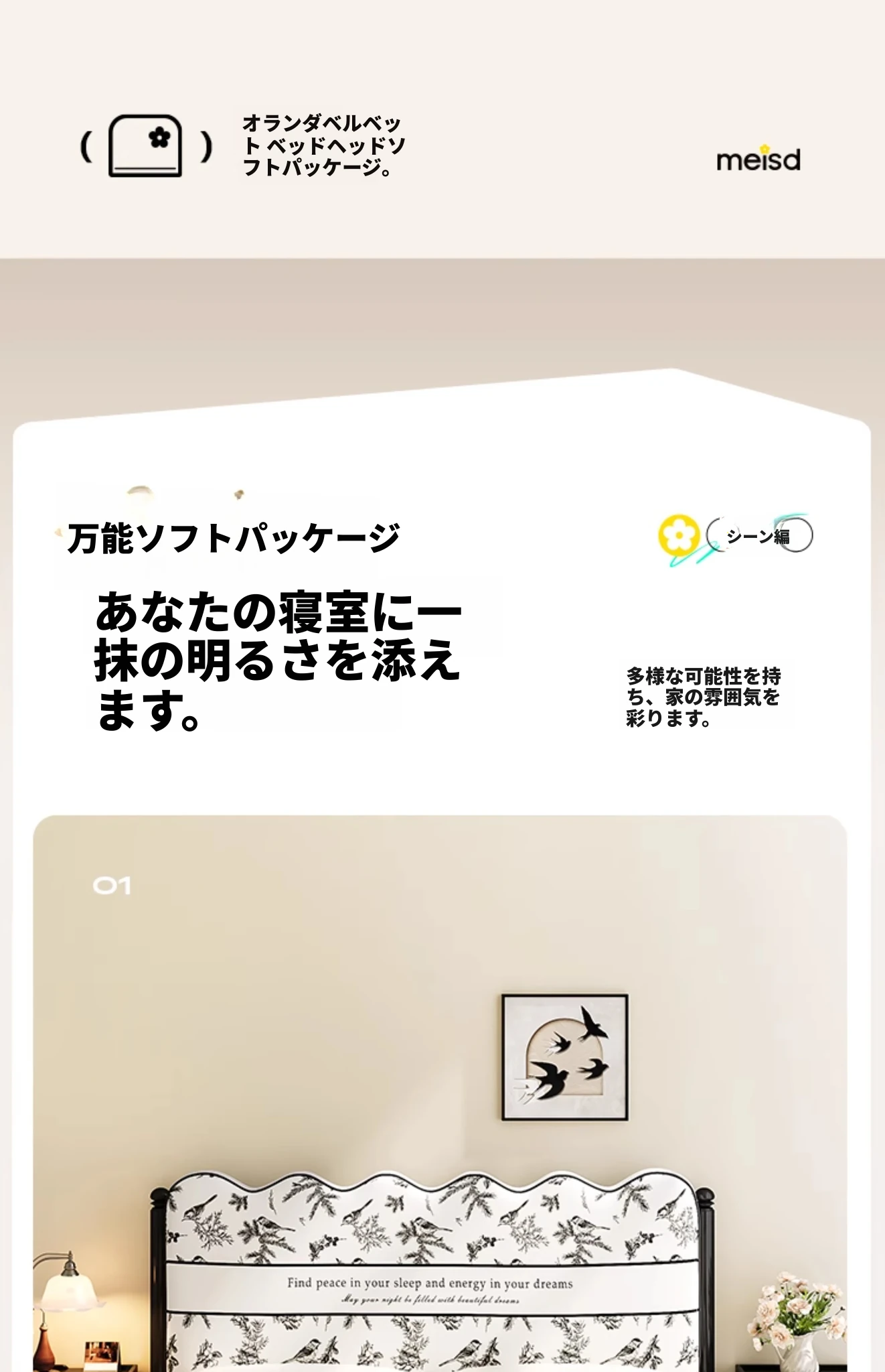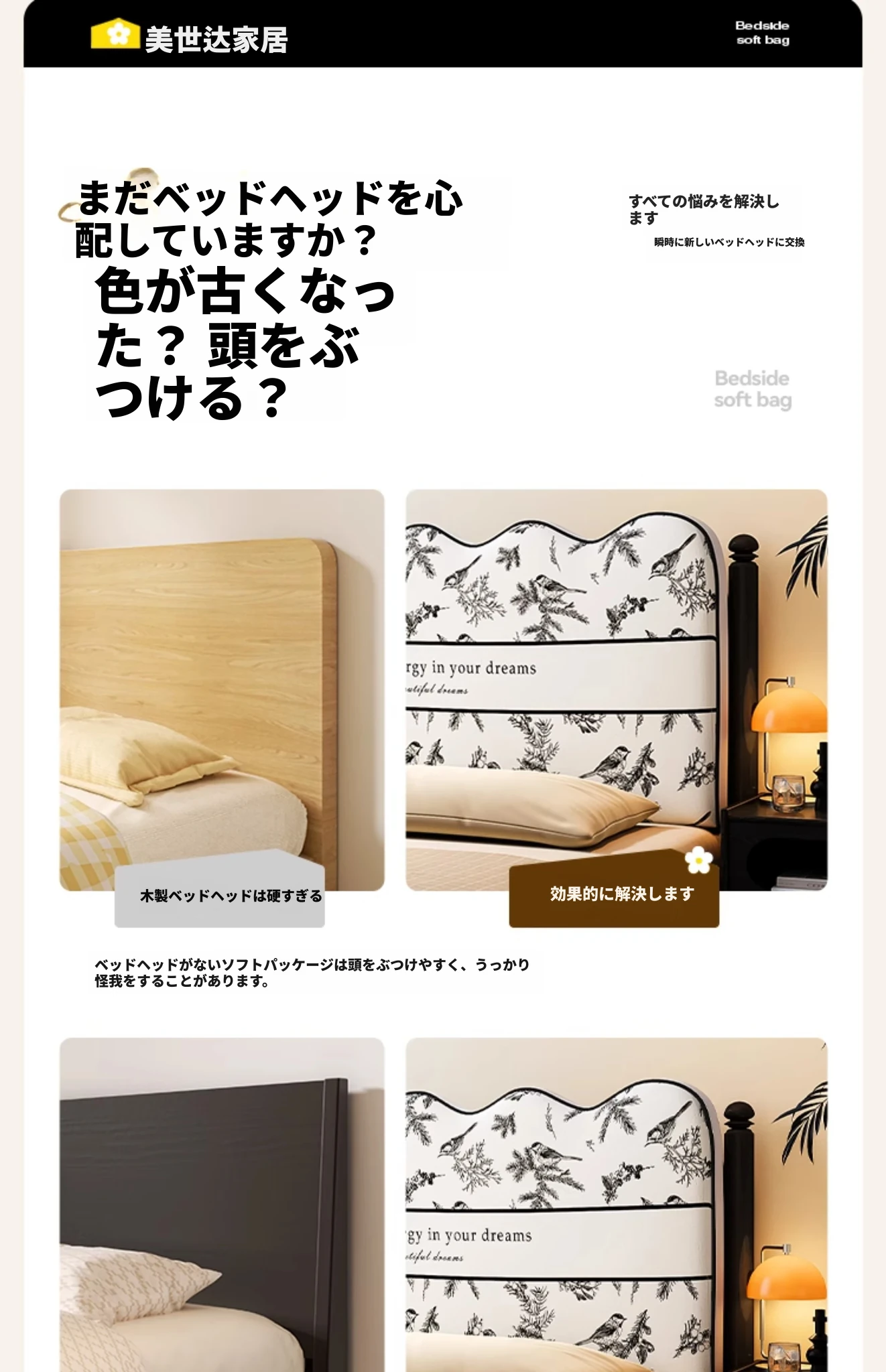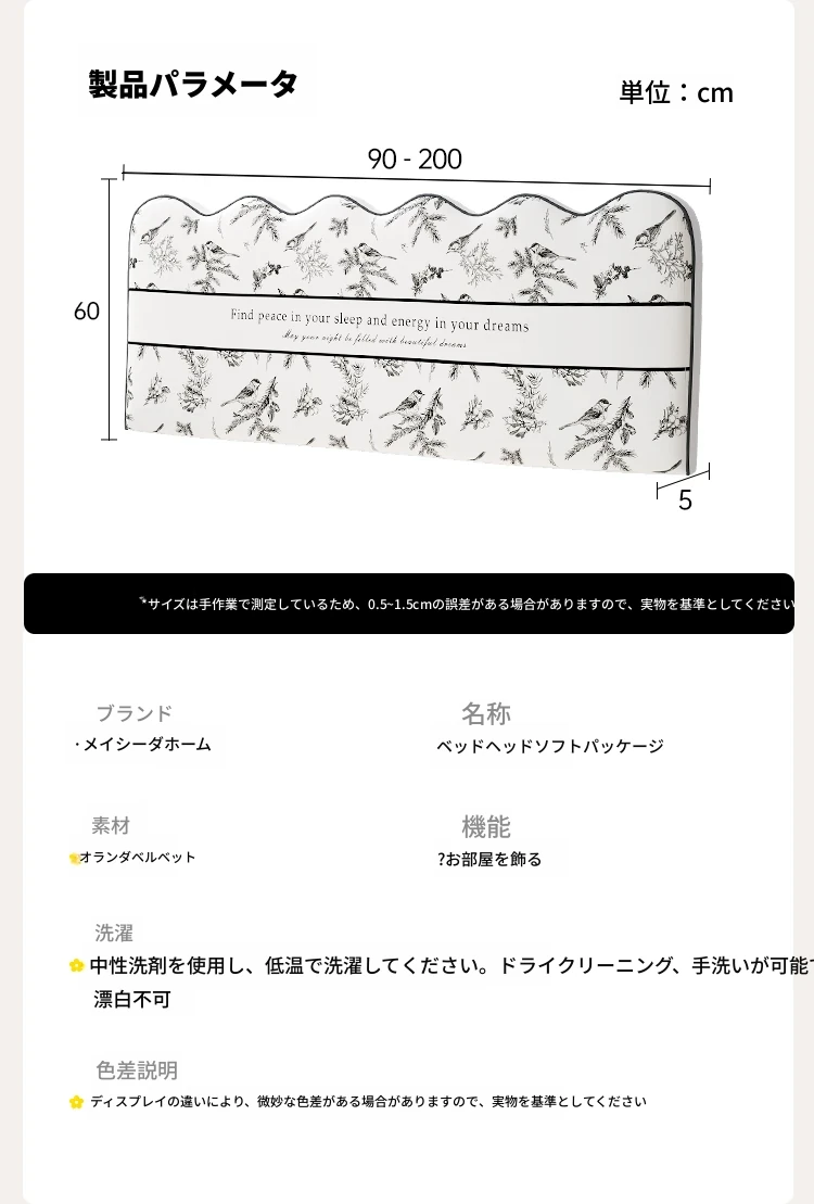 美世达のアンティークスタイルの波形タタミ用ヘッドボードクッション - 高級感あふれるデザイン、取り外し可能で洗える!安全性を考慮した衝撃吸収ソフトパックで、快適な睡眠空間を演出します。