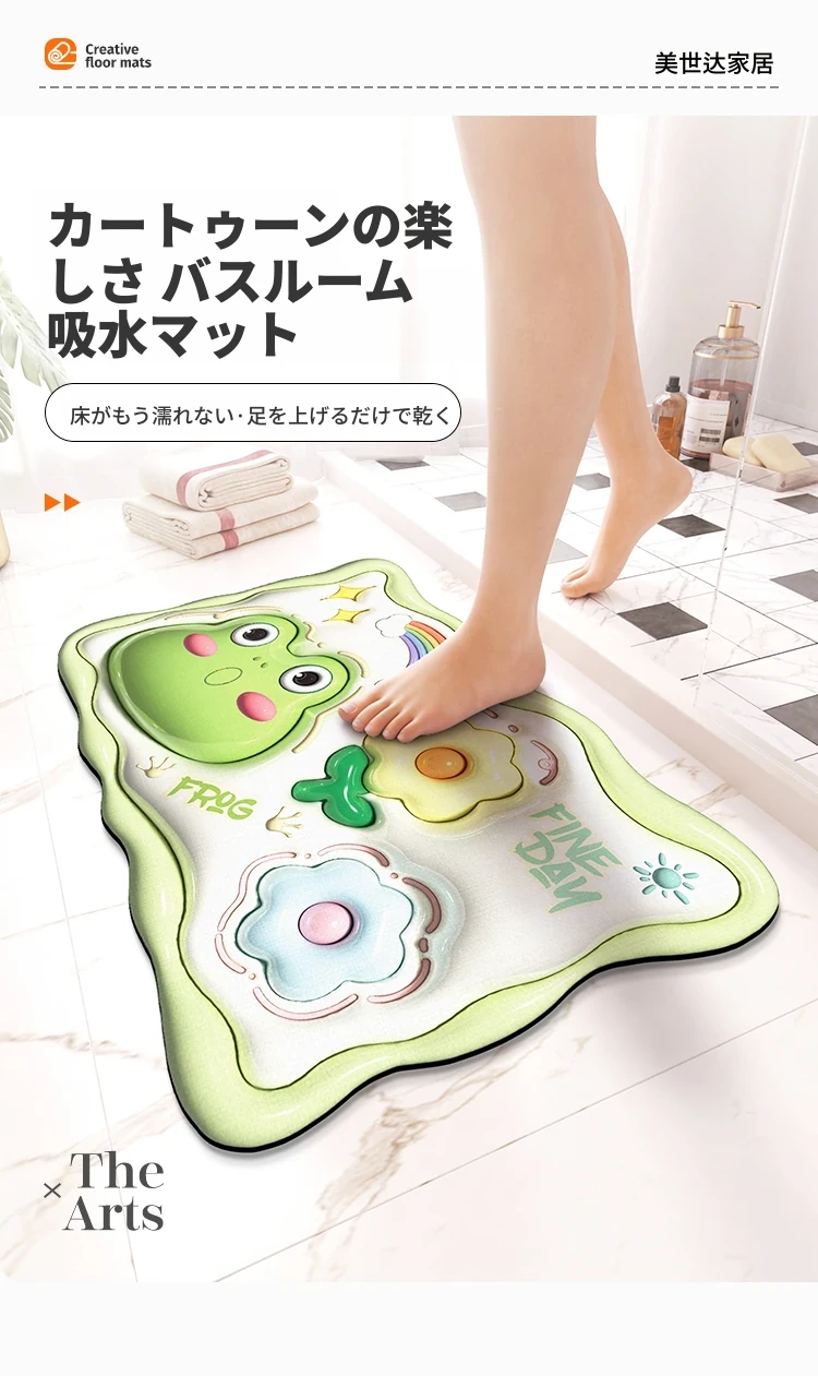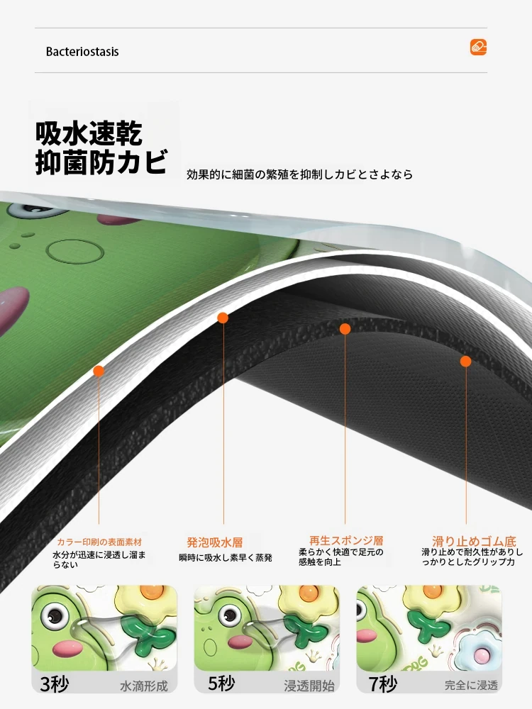美世达速乾バスルームマット - 吸水性抜群!滑り止め付きで安全、家庭用洗面所やトイレに最適なソフトマット。快適さと清潔さを両立させた、あなたの生活を彩るアイテム!