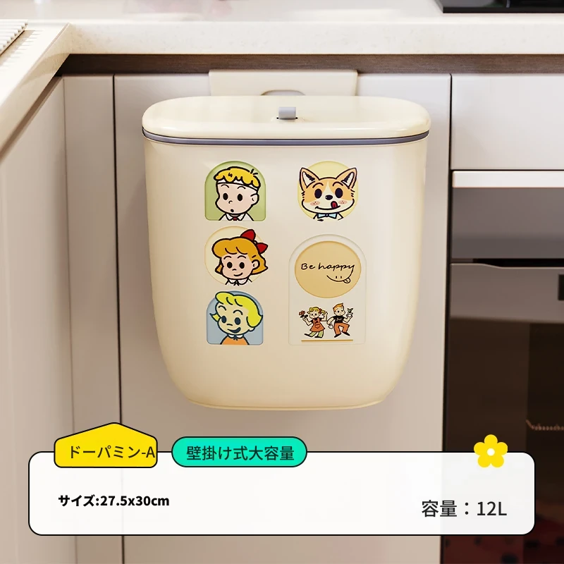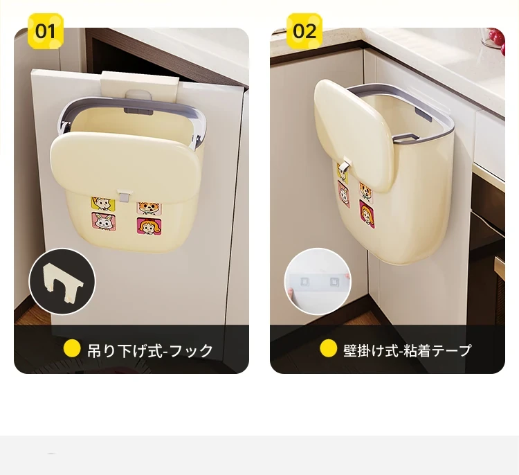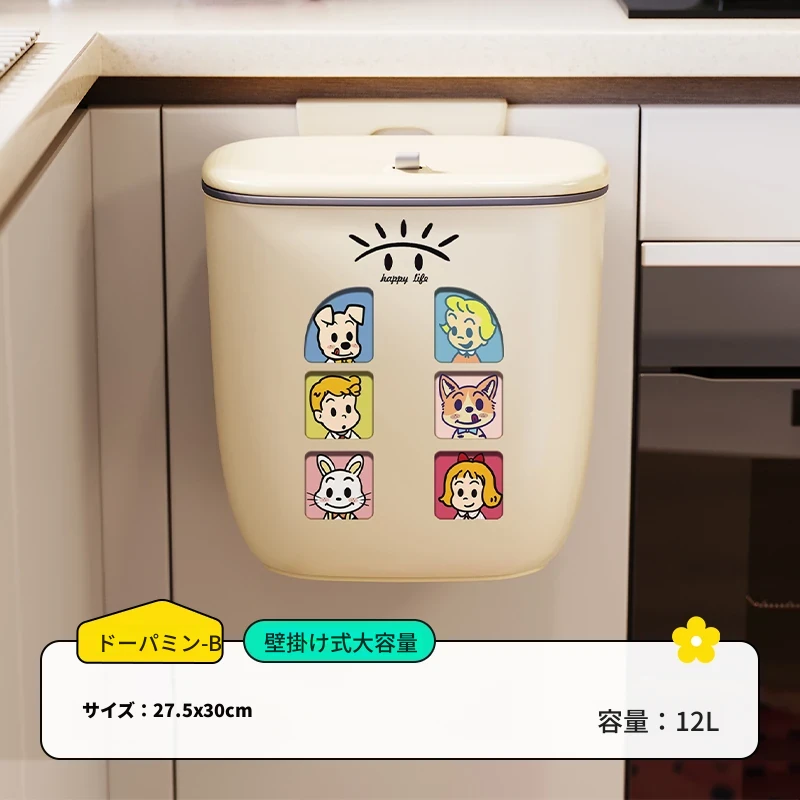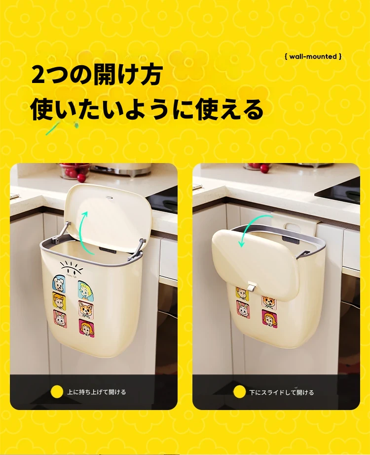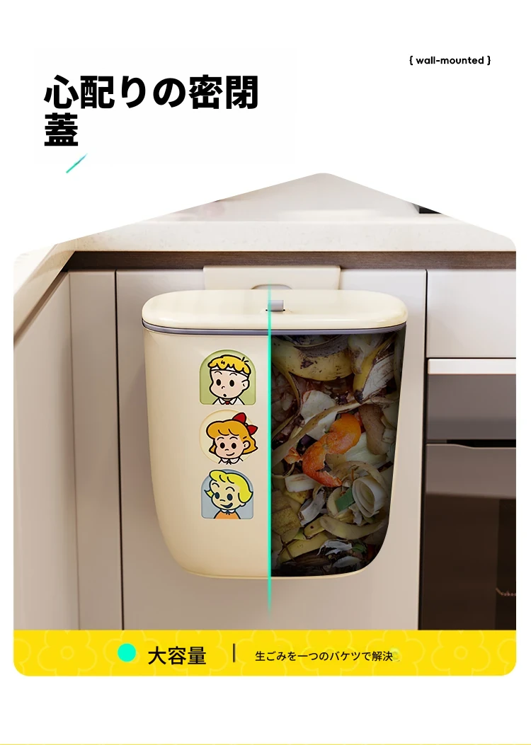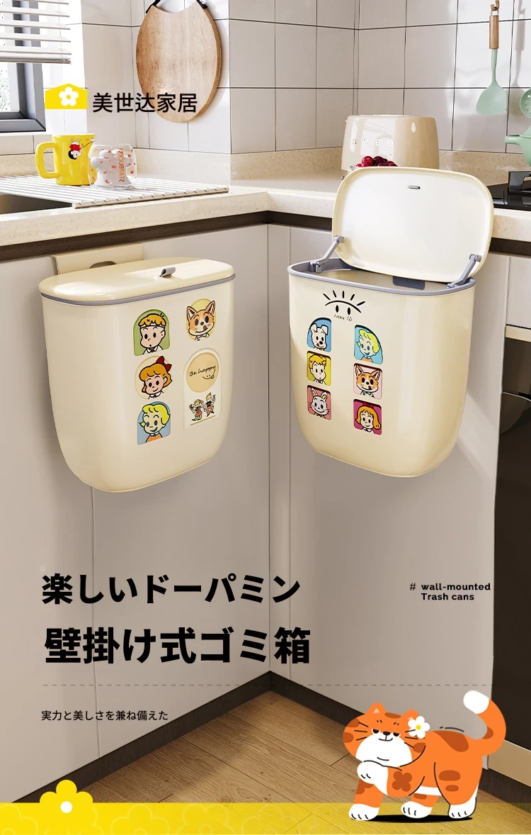 美世达壁掛け式ゴミ箱 - 家庭用クリエイティブデザイン、腰を曲げずに使える大容量の蓋付き収納バケツ!キッチンをスッキリ整理整頓!
