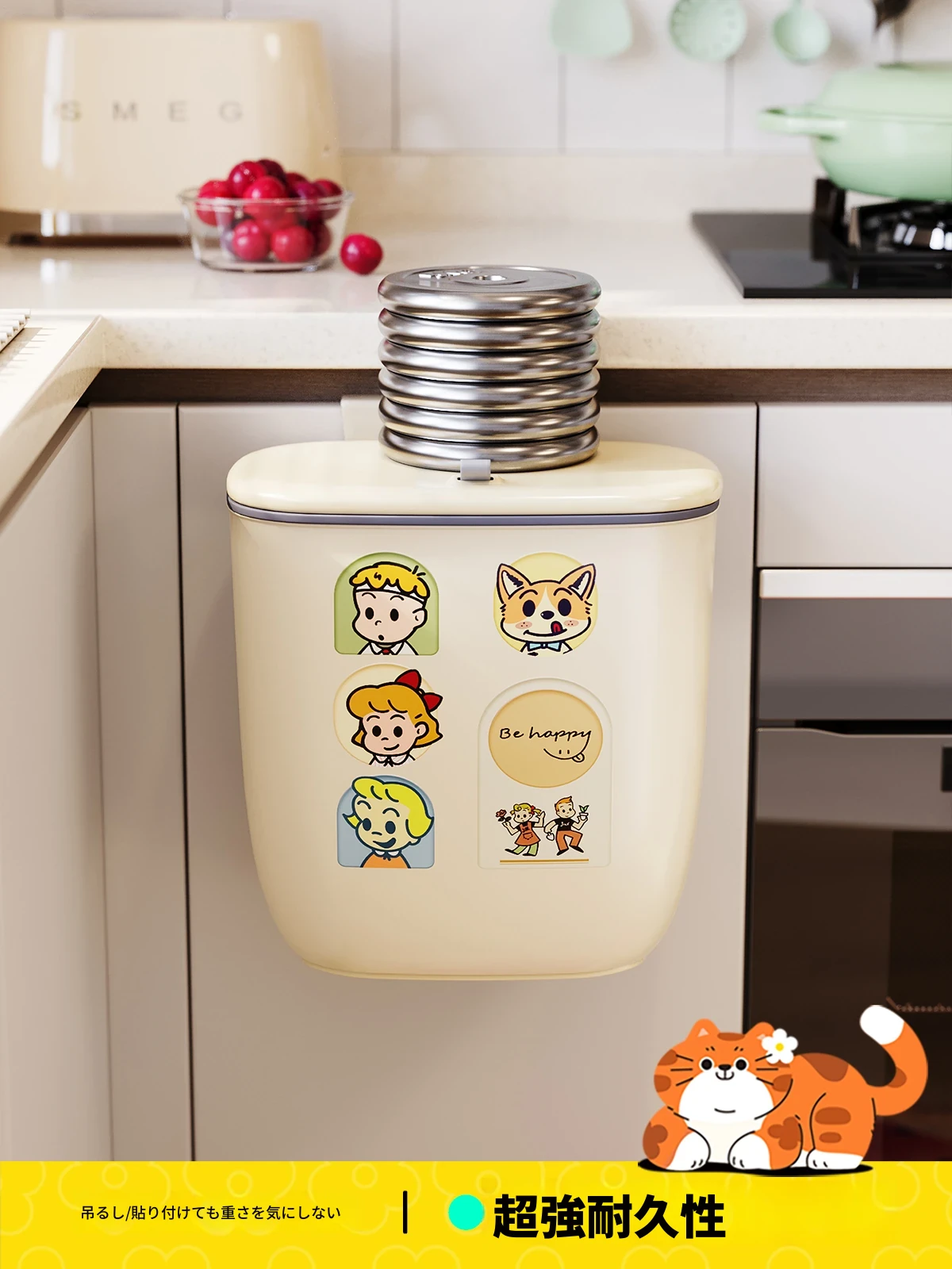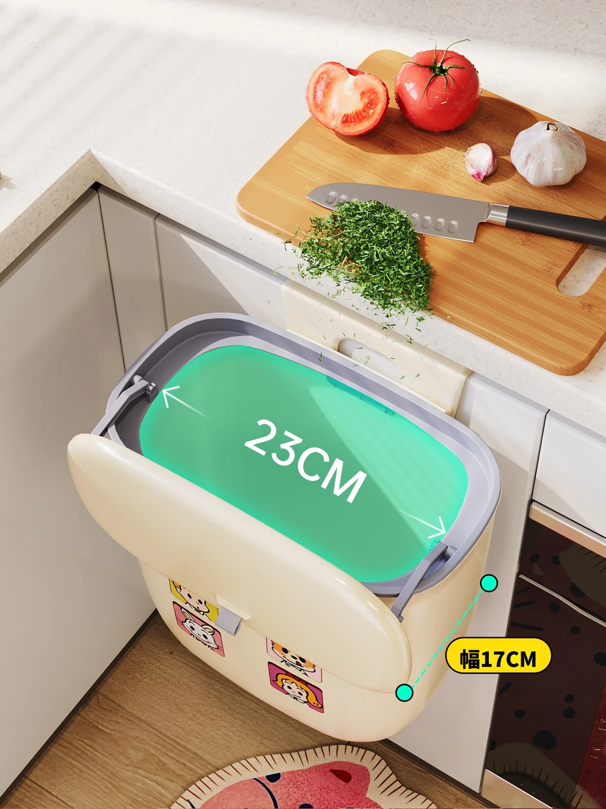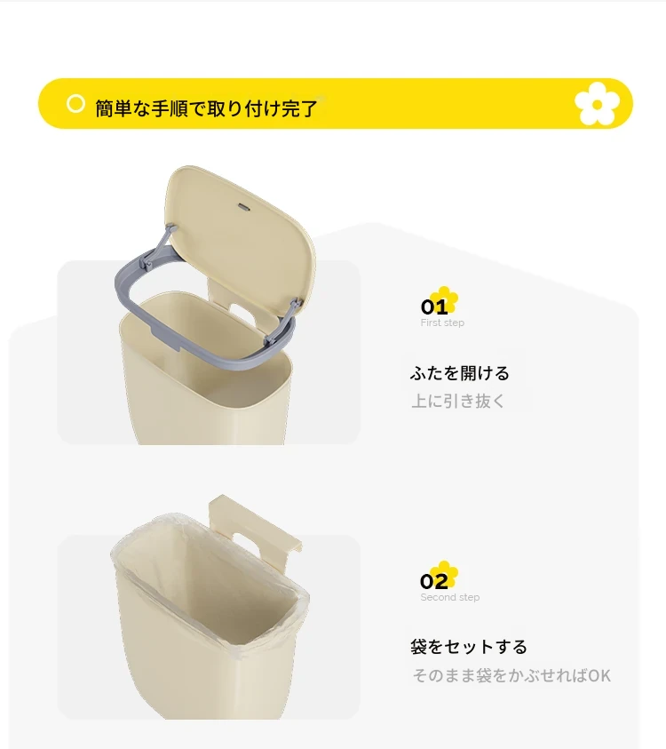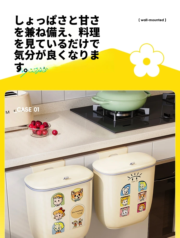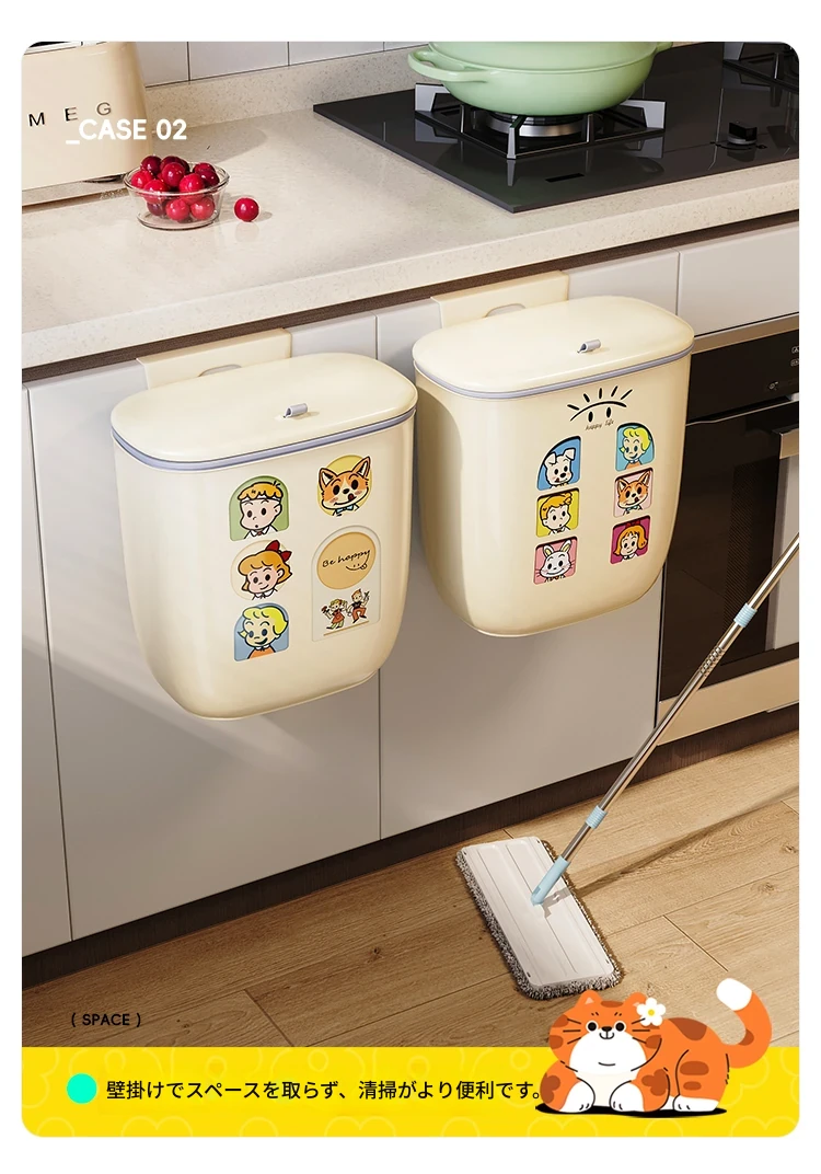 美世达壁掛け式ゴミ箱 - 家庭用クリエイティブデザイン、腰を曲げずに使える大容量の蓋付き収納バケツ!キッチンをスッキリ整理整頓!