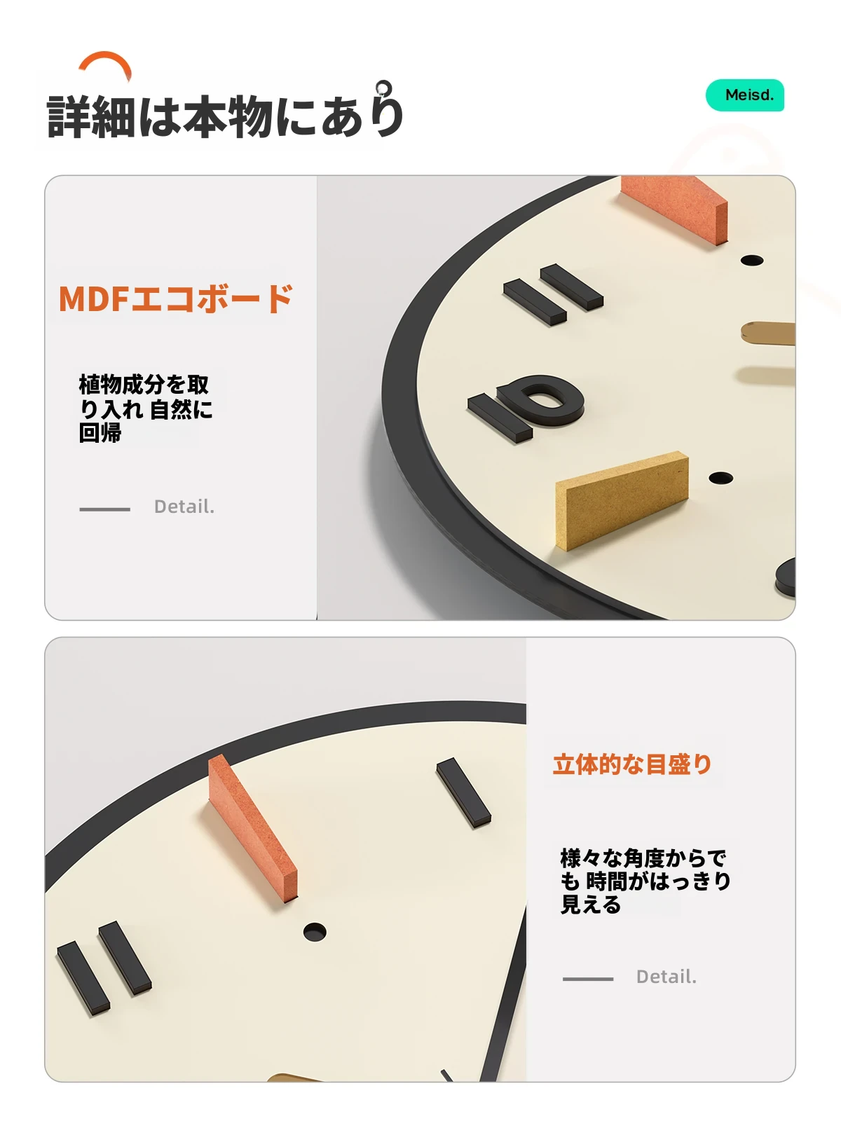 2025年新款!美世达静音掛け時計 - モダンでシンプルなデザイン、リビングやダイニングに最適なクリエイティブなインテリア時計。家庭にぴったりの静かな時を提供します!