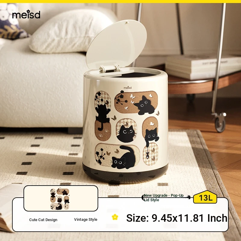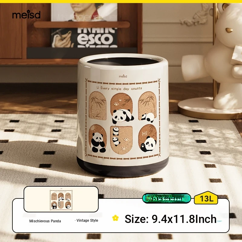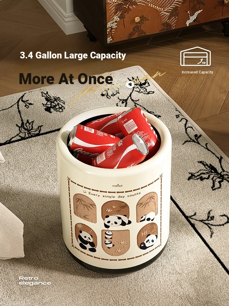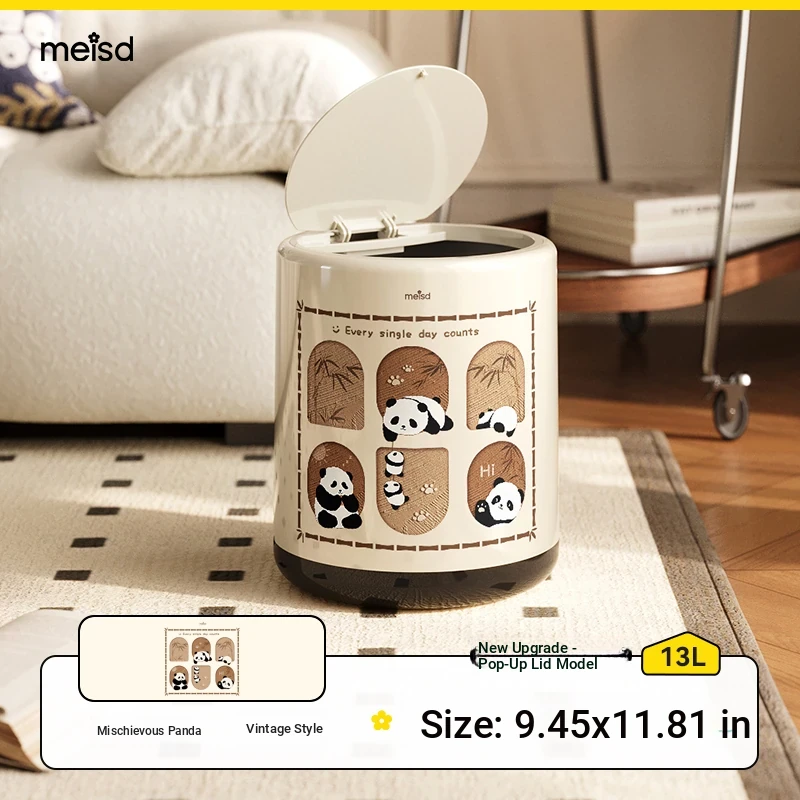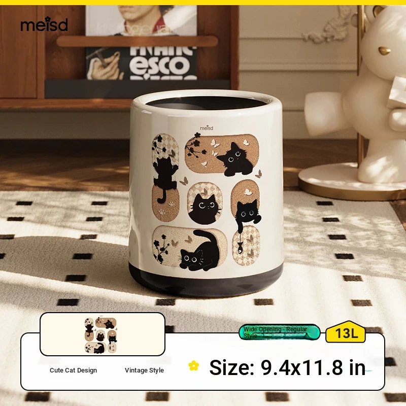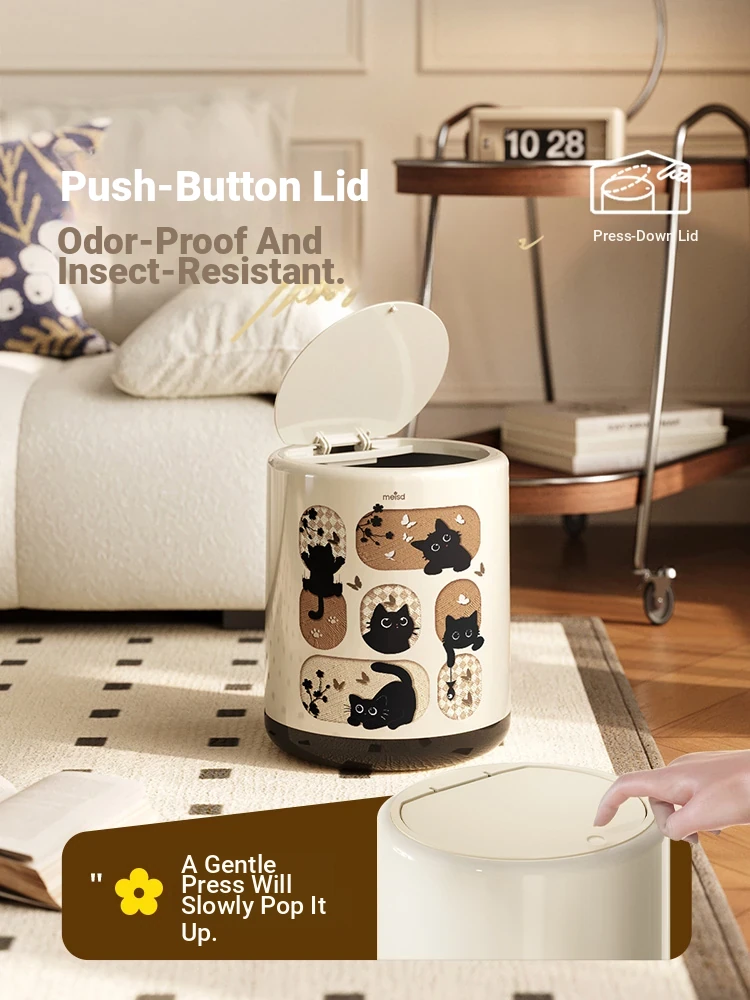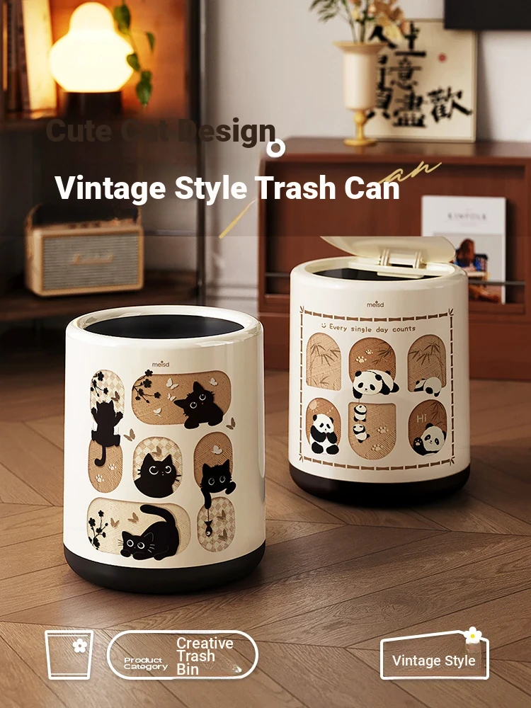 Stylish Covered Trash Can by Meishida - Large Capacity Vintage Design for Home Use, Perfect for Living Room and Bedroom, High-End Hygiene Solution