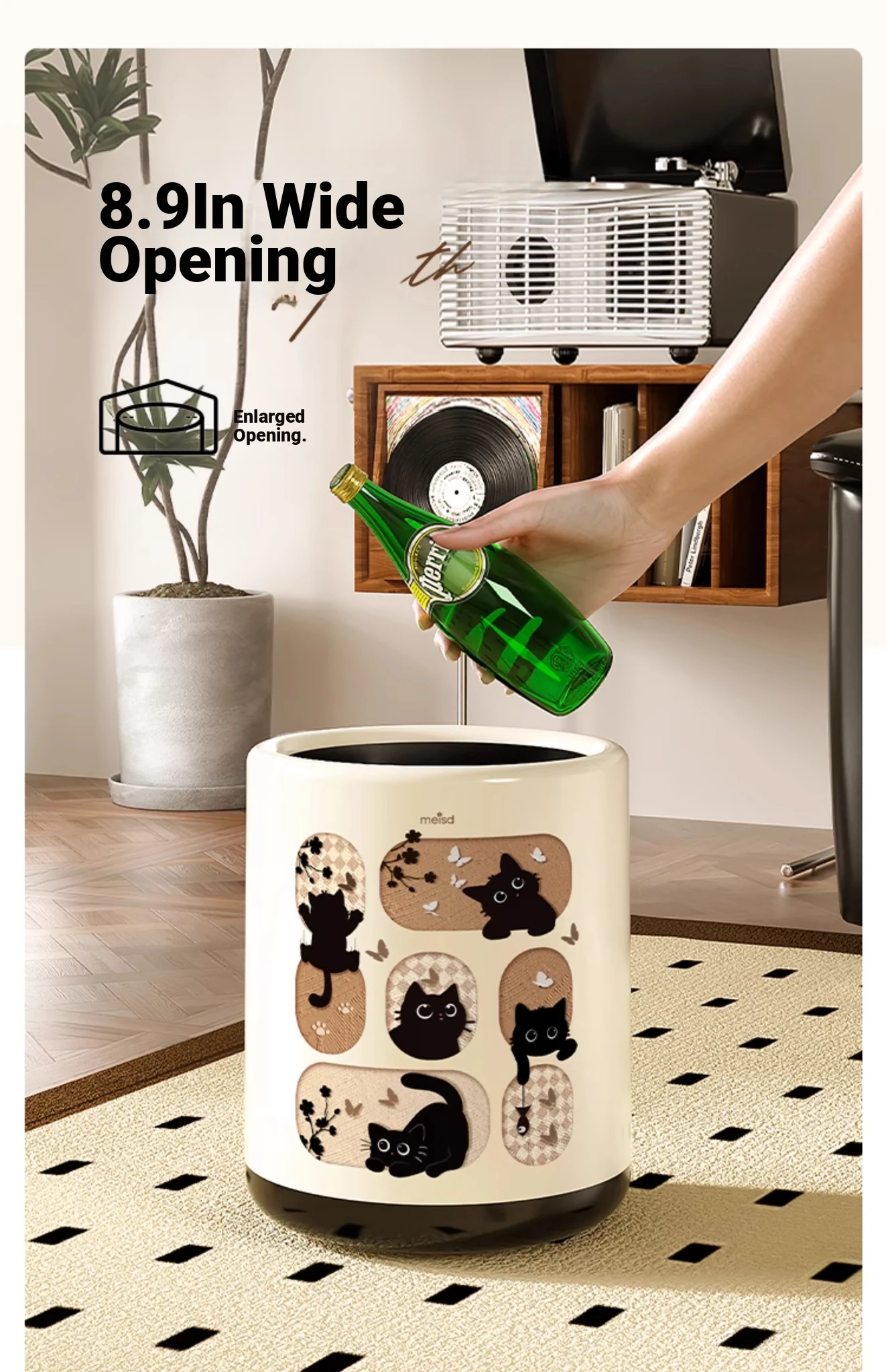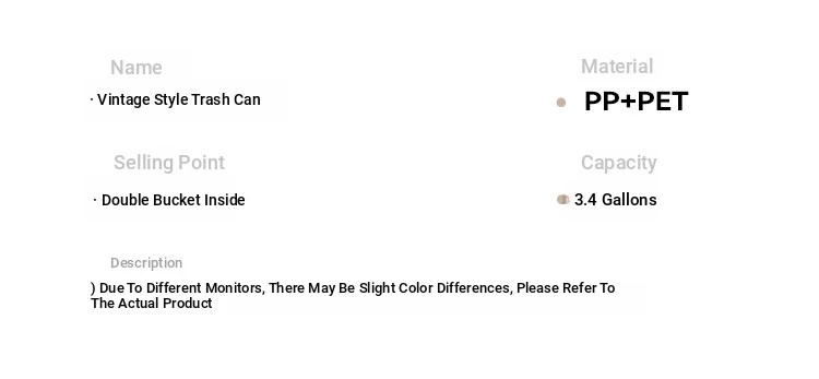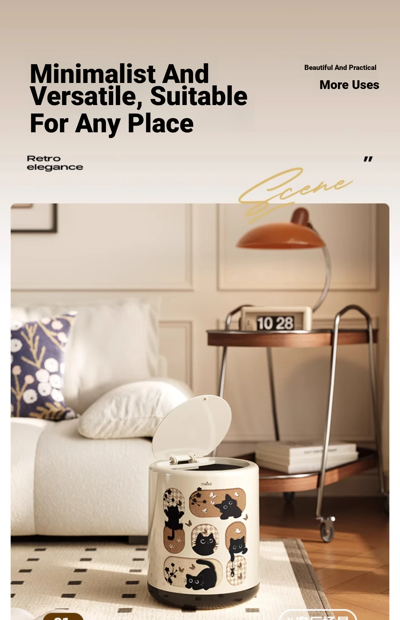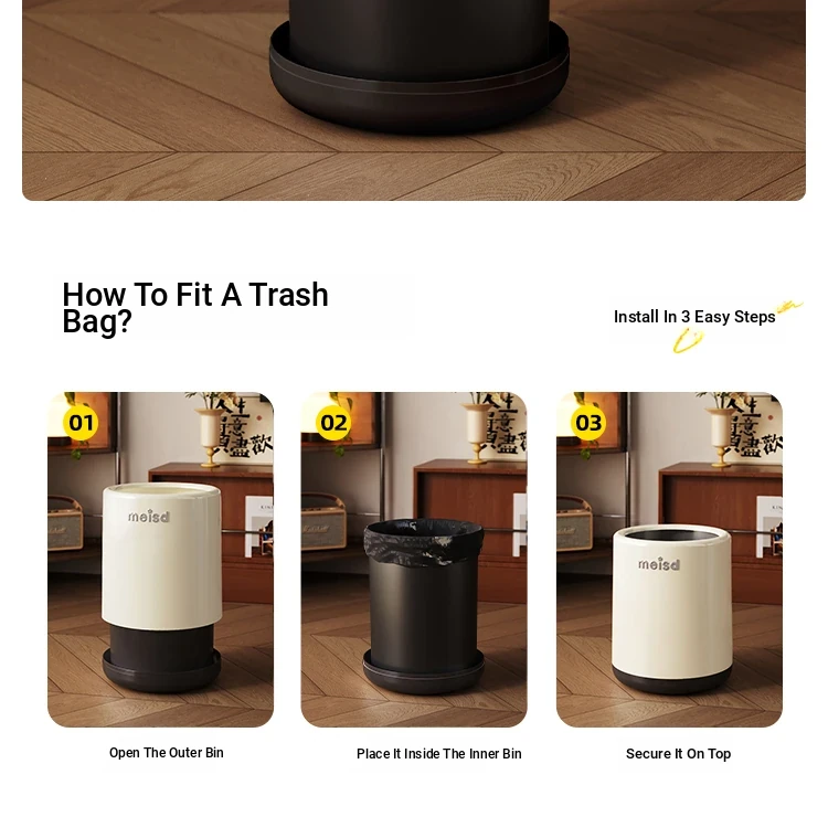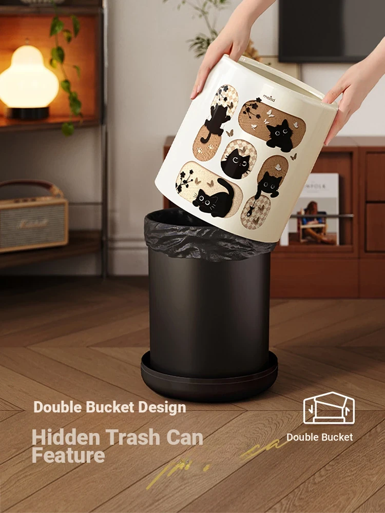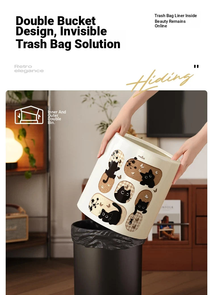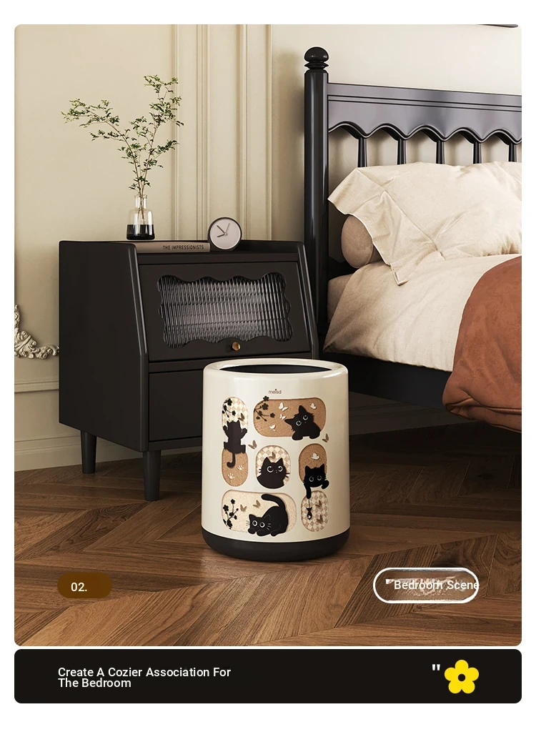 Stylish Covered Trash Can by Meishida - Large Capacity Vintage Design for Home Use, Perfect for Living Room and Bedroom, High-End Hygiene Solution