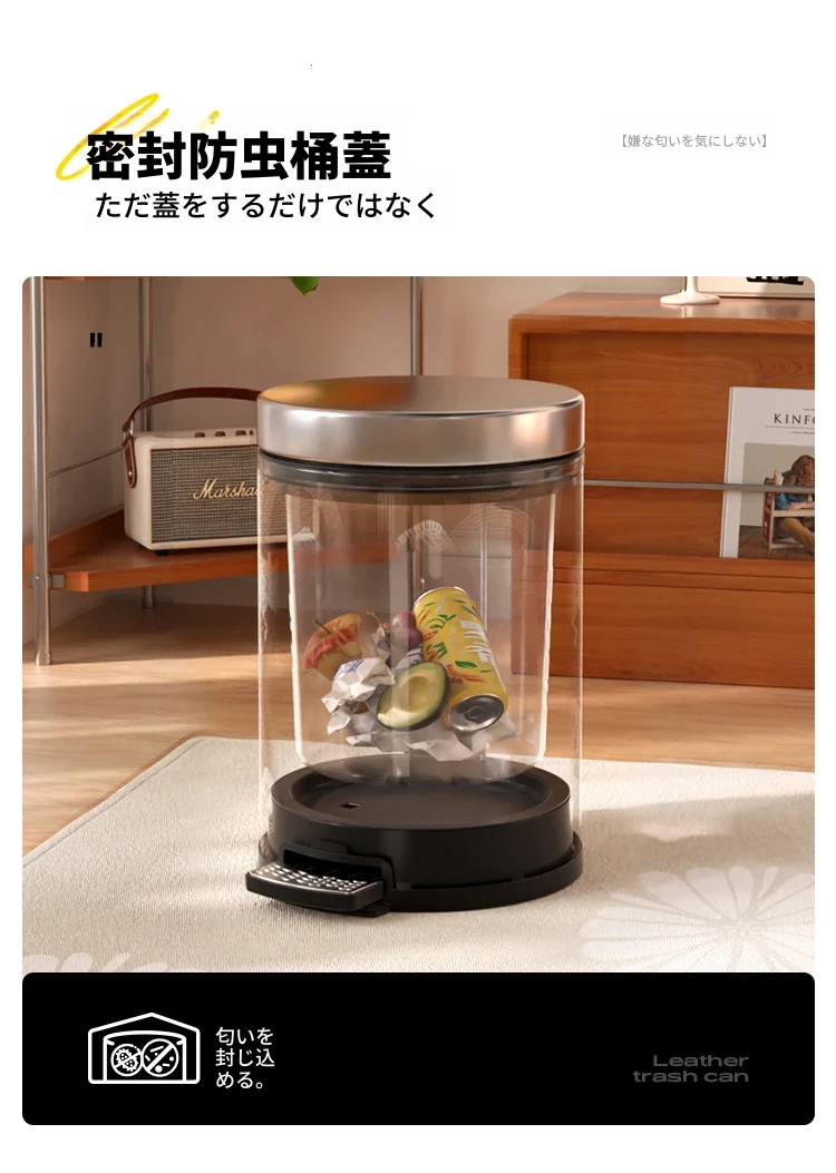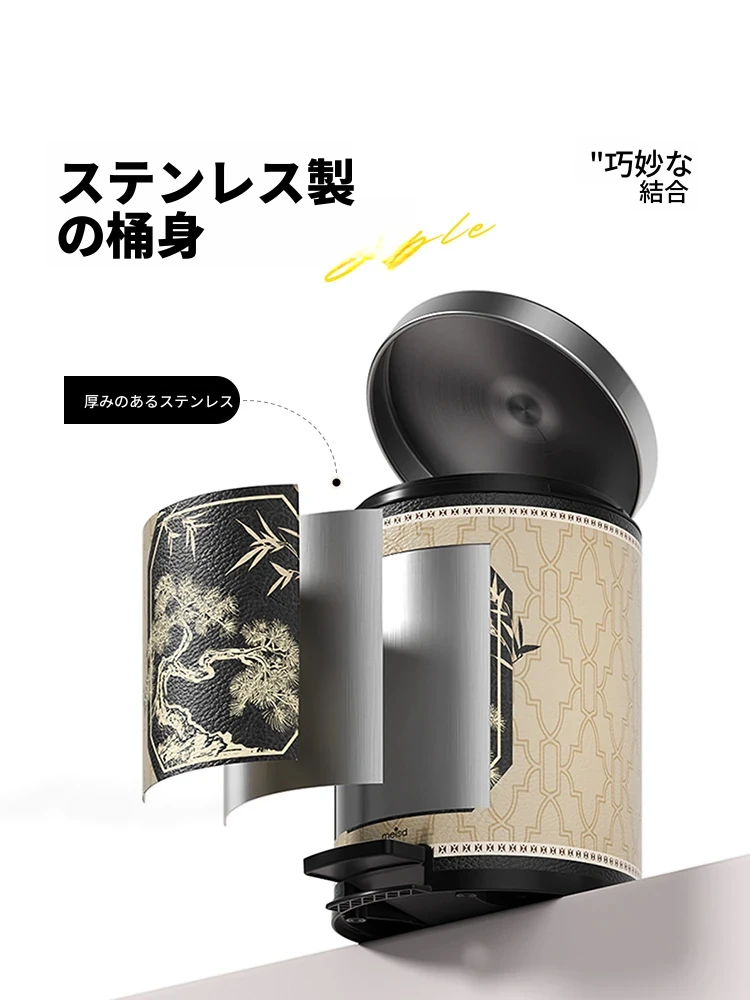 美世达のステンレス製ペダル式ゴミ箱 - 家庭用新作、高級感あふれるモダンデザイン、ダブルレイヤーで大容量、ふた付き!おしゃれで機能的な選択。