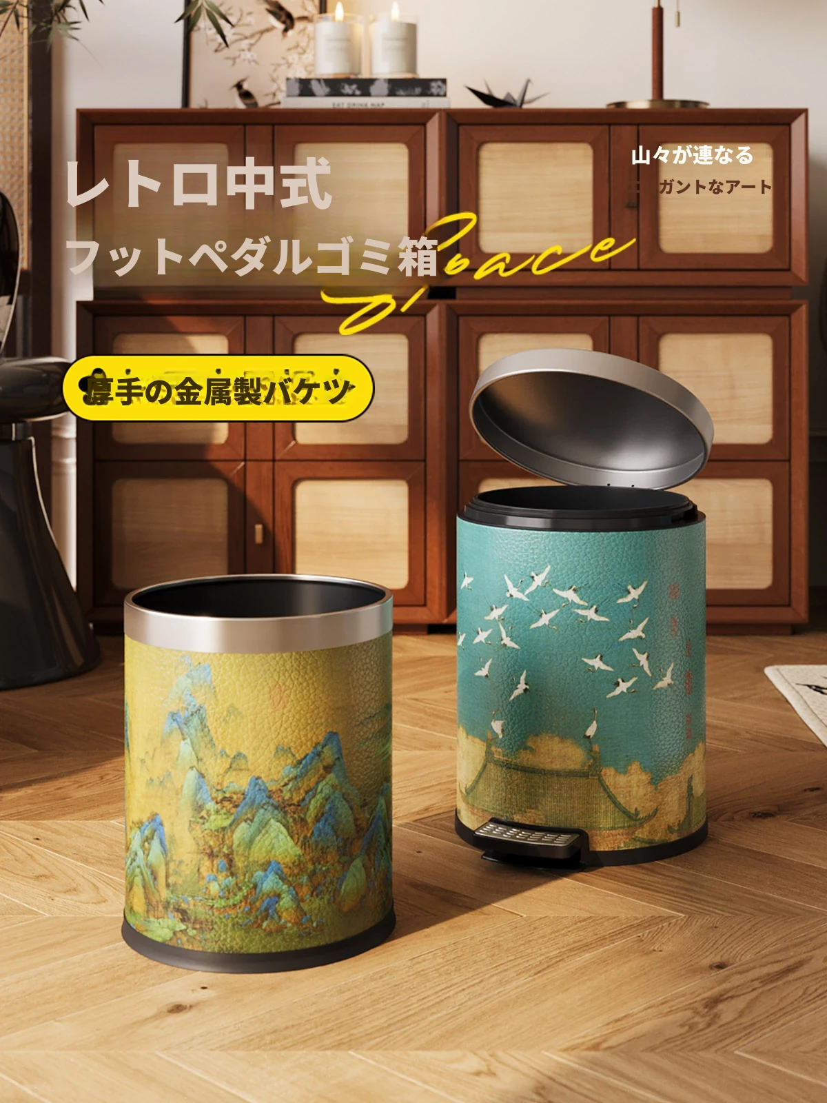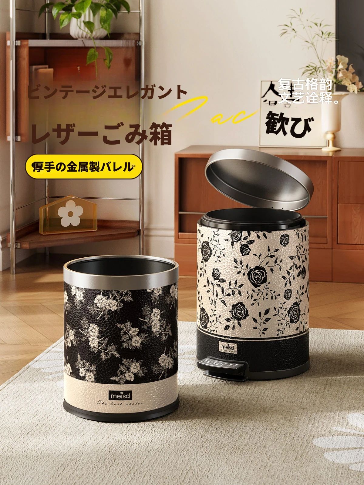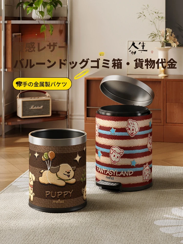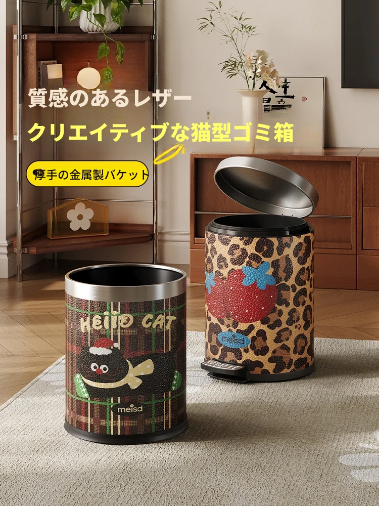 美世达ステンレス製レザーゴミ箱 - 家庭用ヴィンテージ風高級デザイン、千里江山の美しさを持つリビング収納バスケット