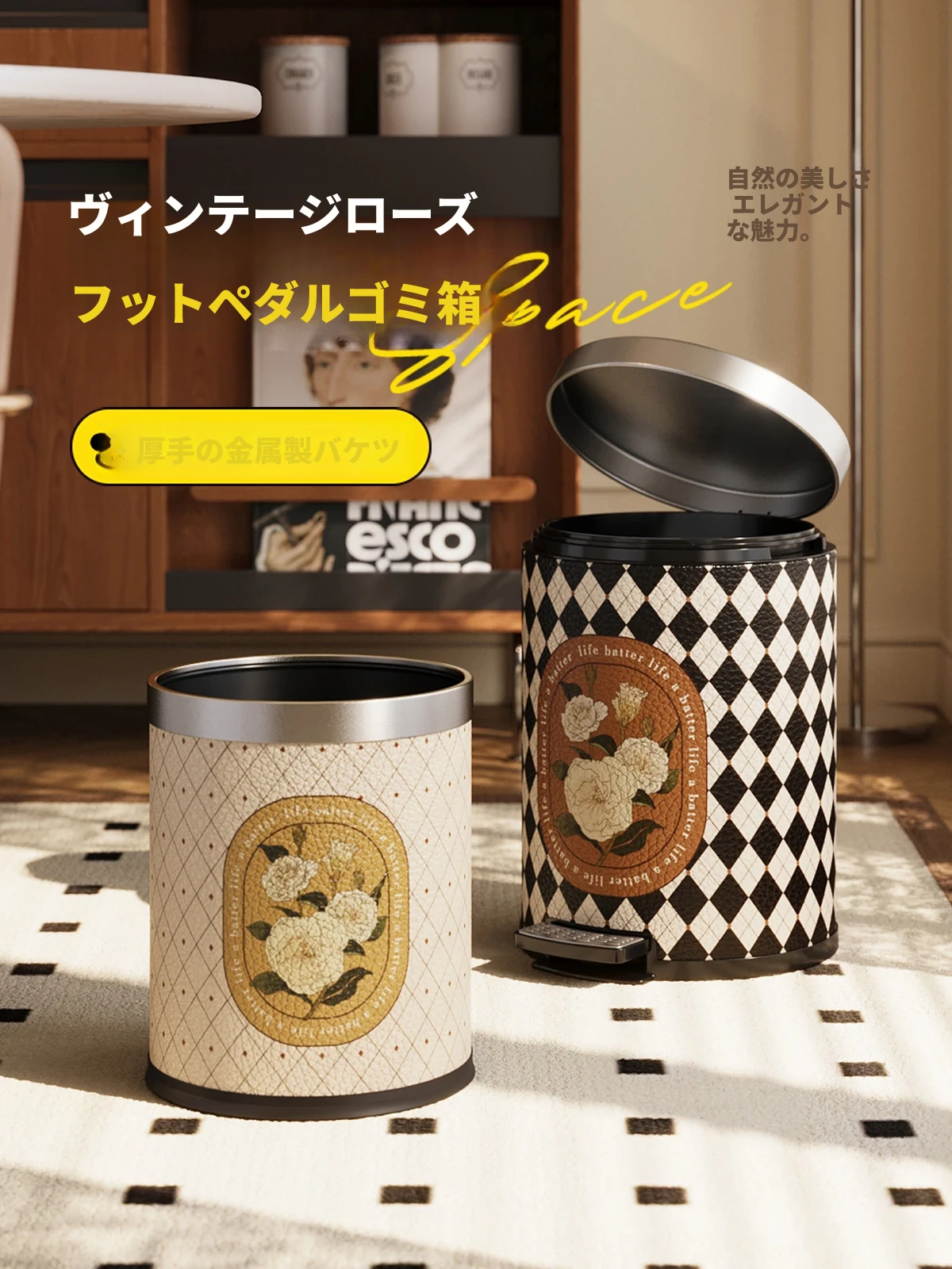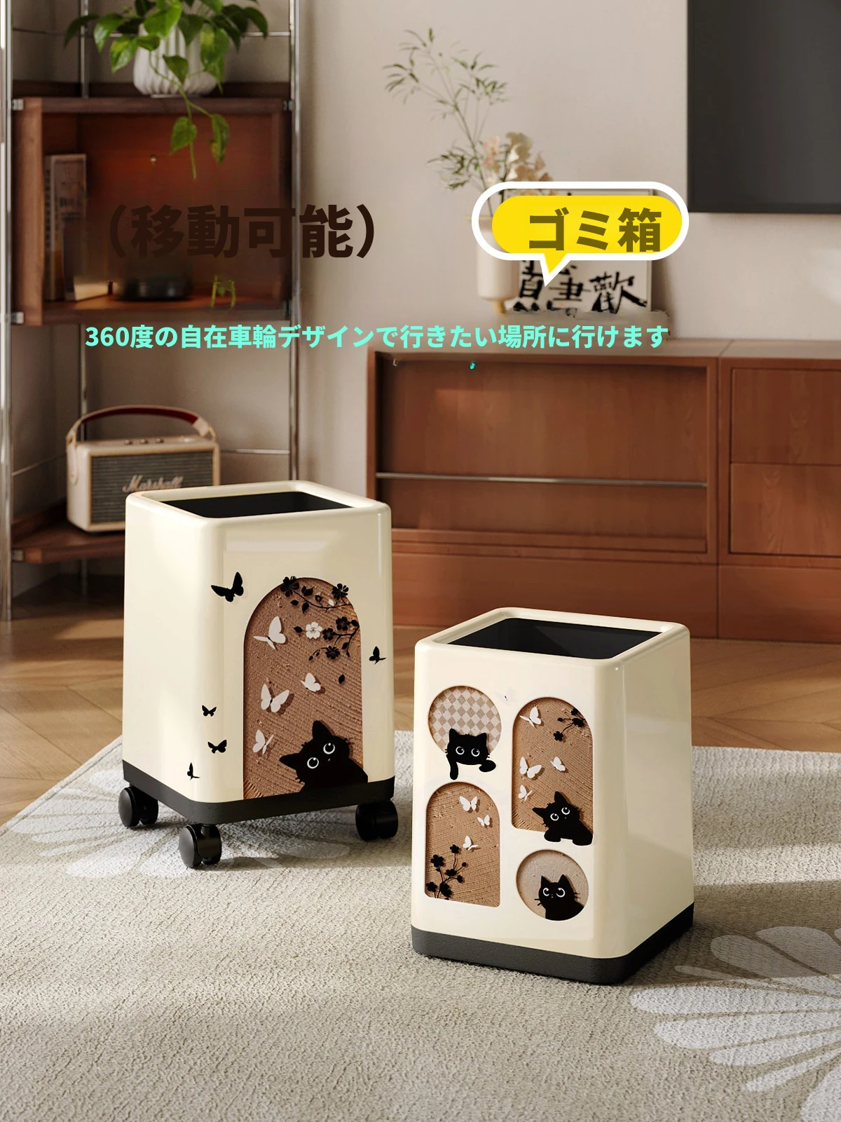 美世达の高級感溢れる中古風ゴミ箱 - リビングやキッチンに最適!移動可能なキャスター付きで、スタイリッシュなデザインが魅力。あなたの空間を美しく彩ります。